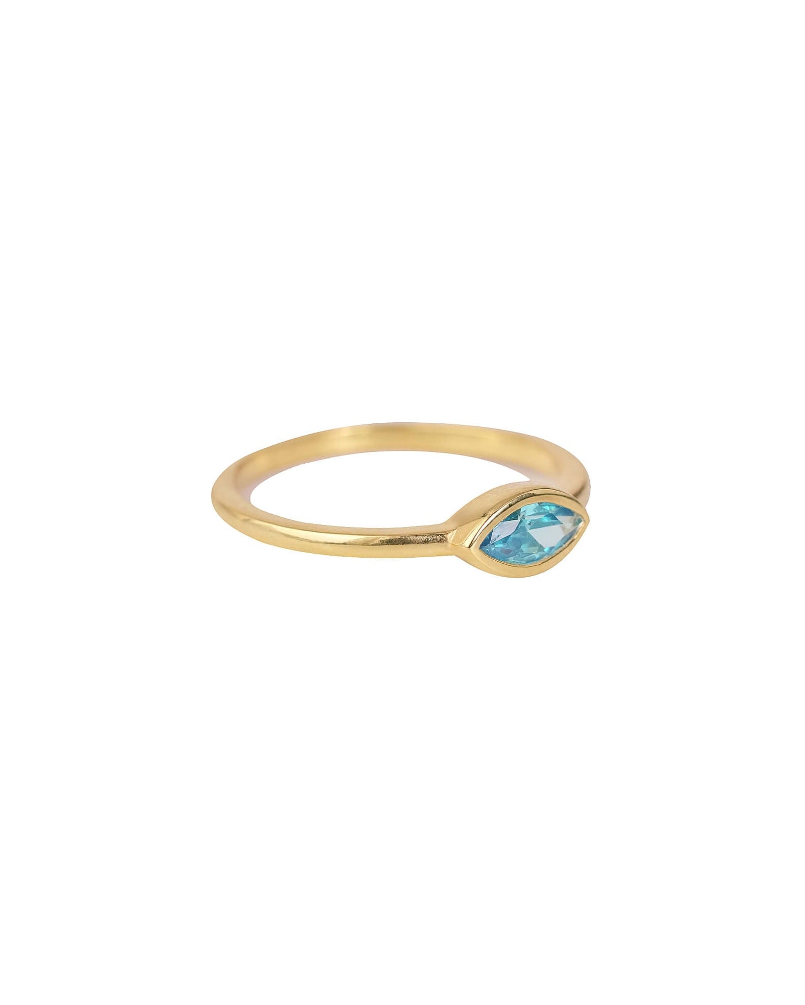 This handcrafted blue topaz marquise ring is made in 925 sterling silver and plated with 18K gold vermeil. The centerpiece is a Swiss-grade cubic zirconia in a rich blue topaz shade, offering a realistic diamond-like sparkle that’s durable and eye-catching. Blue topaz is the birthstone for December, symbolizing calm, clarity, and communication.